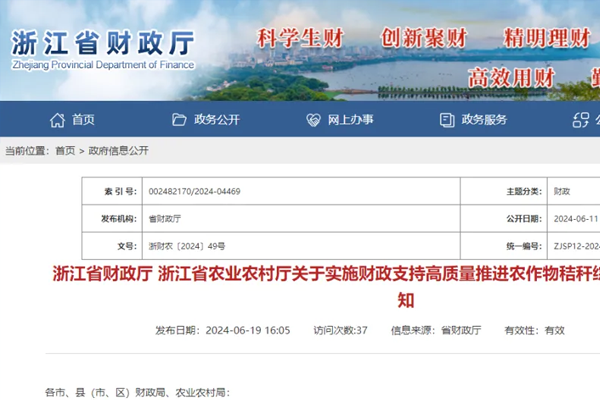各市、县(市、区)财政局、农业农村局:为全面贯彻落实《浙江省人民政府办公厅关于高质量推进农作物秸秆综合利用的实施意见》(浙政办发〔2024〕2号)精神,充分发挥
