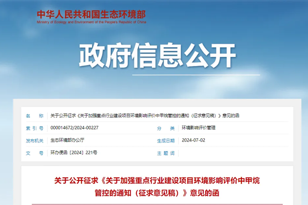 关于公开征求《关于加强重点行业建设项目环境影响评价中甲烷管控的通知(征求意见稿)》意见的函为贯彻落实《关于全面推进美丽中国建设的意见》《甲烷排放控制行动方案》,