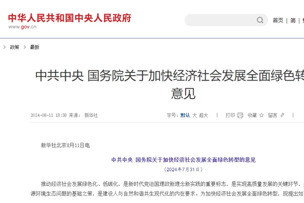 中共中央 国务院关于加快经济社会发展全面绿色转型的意见推动经济社会发展绿色化、低碳化,是新时代党治国理政新理念新实践的重要标志,是实现高质量发展的关键环节,是解