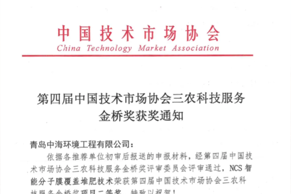 近日,中国技术市场协会印发了《第四届中国技术市场协会三农科技服务金桥奖获奖通知》,表彰全国技术市场中做出突出成绩的先进集体、个人和优秀科技成果转化项目。青岛中海